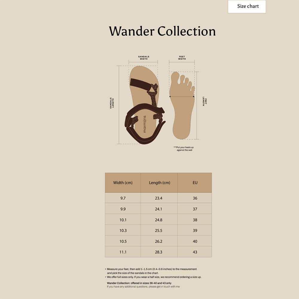 Our sandals are ideally suited for normal to wide feet. You can check the sandals width in the size chart